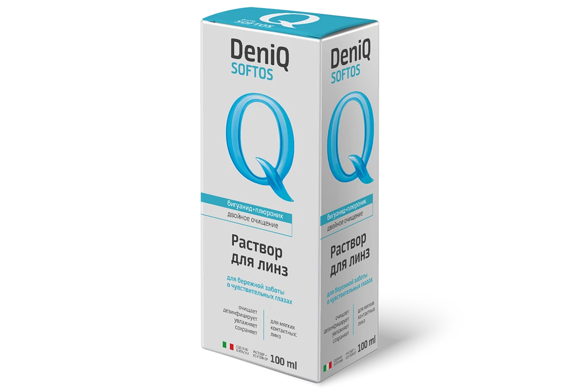 Итальянский раствор DenIQ подходит для ухода за контактными линзами различных типов. DenIQ одновременно выполняет несколько функций: очищение от отложений, увлажнение поверхности контактных линз, защита роговицы от недостатка кислорода.