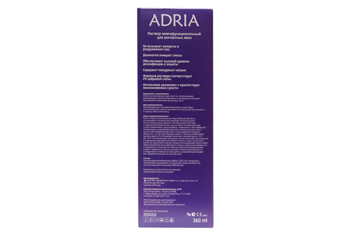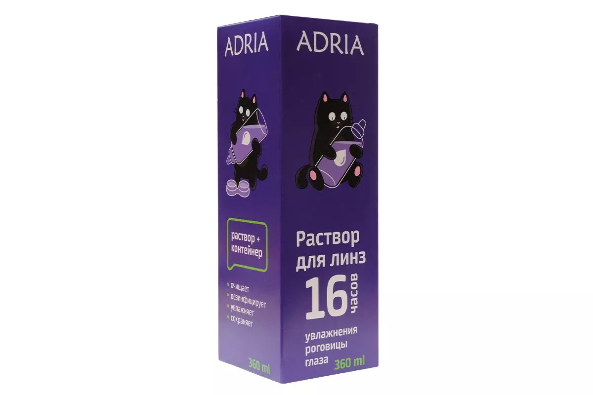 Рекомендован: — пользователям цветных и прозрачных линз ADRIA; — всем, кто ищет раствор с выраженным увлажняющим эффектом.