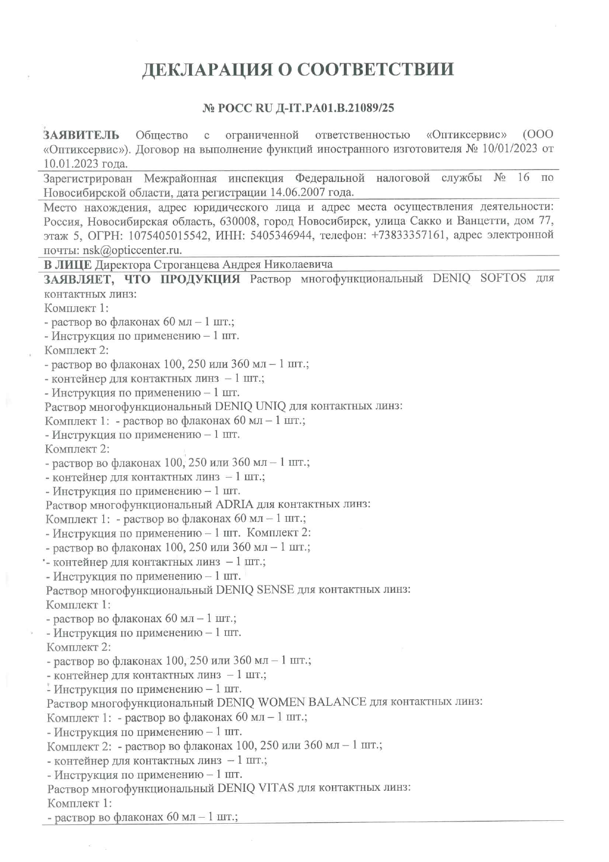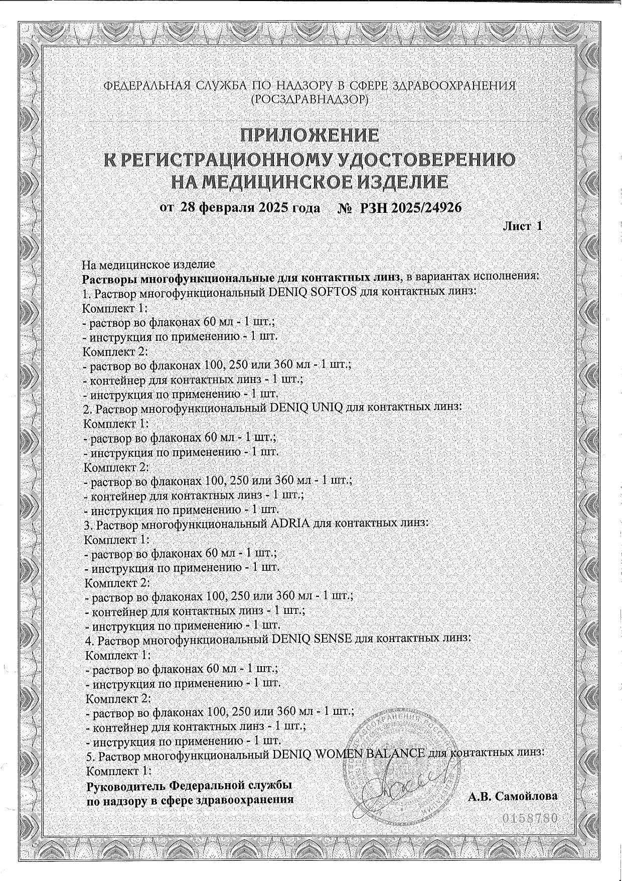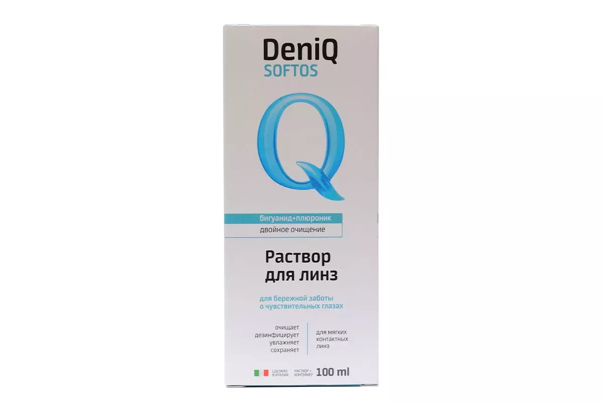 DenIQ Softos — итальянский многофункциональный раствор для ухода за всеми типами мягких контактных линз.