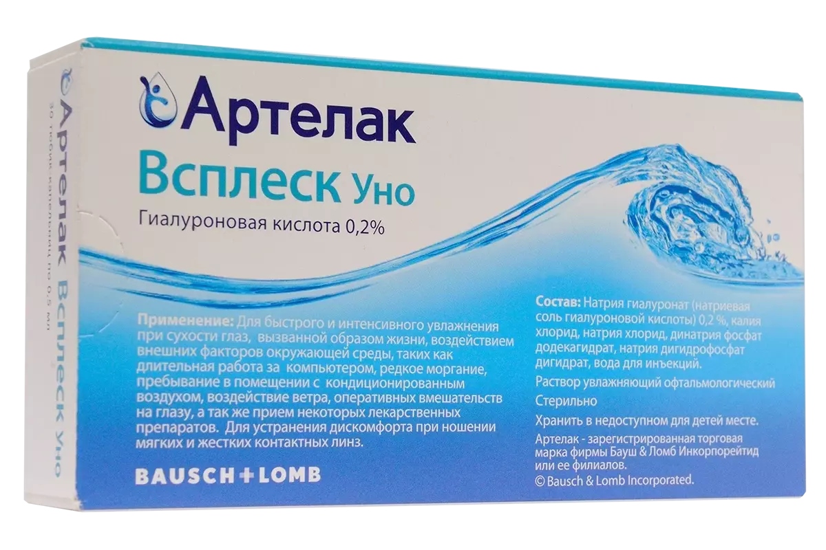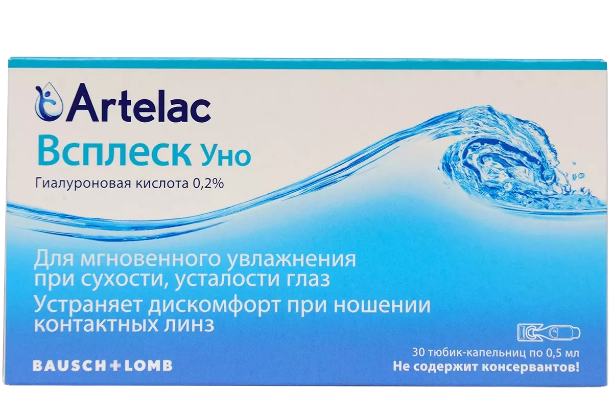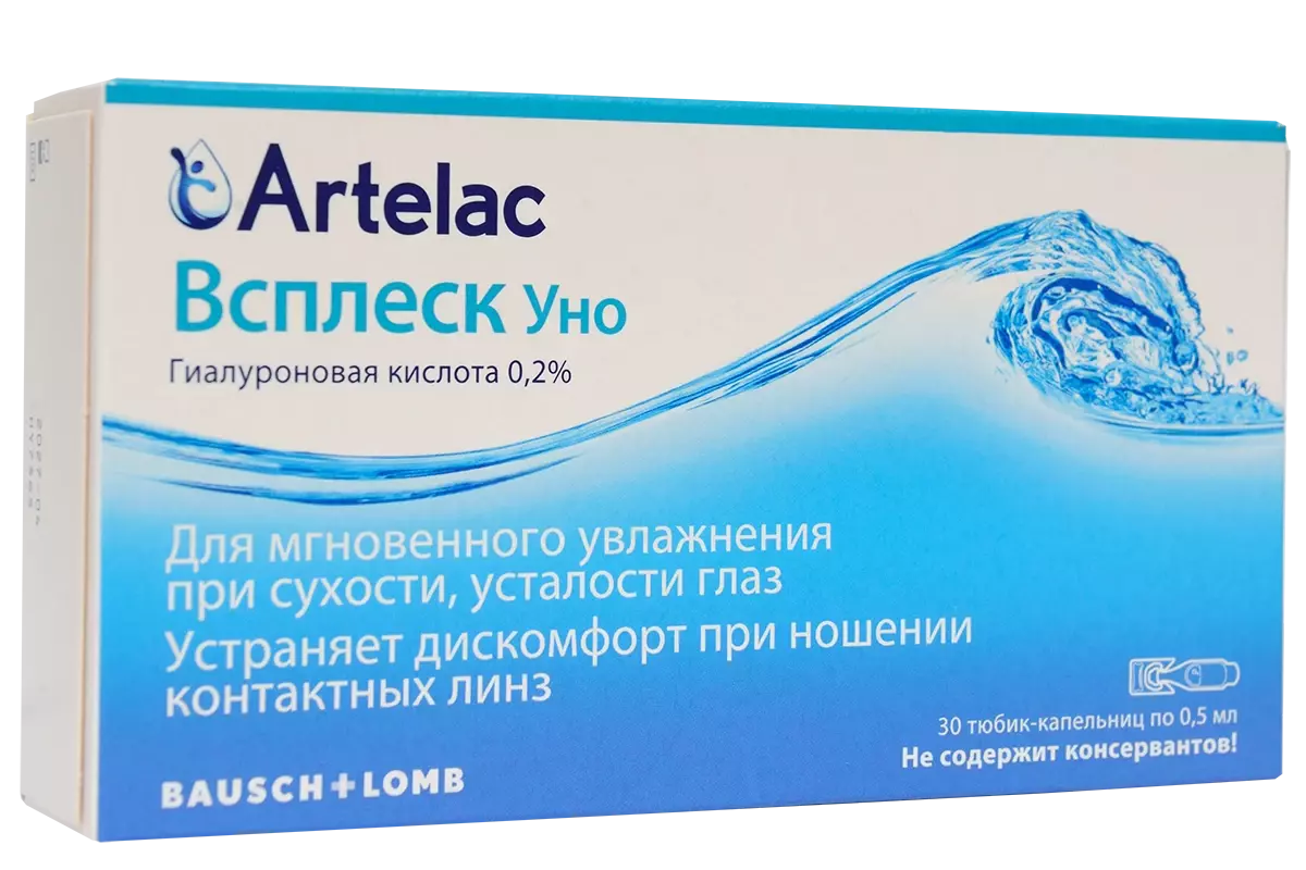 Артелак Всплеск Уно — офтальмологический раствор для моментального увлажнения при сухости и усталости глаз.