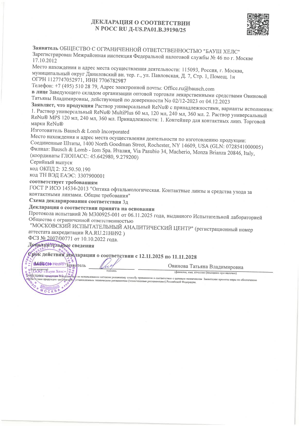 Подходит для контактных линз всех типов, включая силикон-гидрогелевые.
